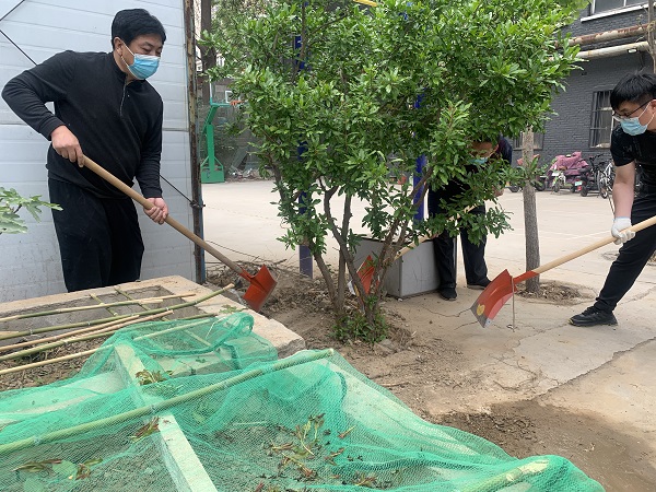 下午一點半,還沒到集合時間,黨員們已經在辦公樓下領取工具,有序排隊,整裝待發。經過分公司黨總支書記孫立鋒簡單的講話和小組分工后,大家各自拿著掃帚、鐵鍬等工具投入到負責的區域。首先大家對院內路面、綠化帶、車棚、門廳、大門洞等區域進行了打掃和清理。勞動過程中,分公司班子成員分成四隊,孫立鋒帶頭負責打掃職工活動室周邊以及車棚的犄角旮旯,主任會計師孫春泉帶頭負責打掃辦公樓東側死角位置,開發副經理高青帶頭打掃樓后狹窄過道,主任經濟師孔艷艷帶頭擦拭門洞宣傳欄、清理花池中的枯枝、雜草。長期“飽經風霜”的門洞宣傳欄一層塵土,孔艷艷全然不顧塵土飛揚,踩著凳子擦拭高處。在清理車棚衛生時,為達到更好的清理效果,需要將每輛車移位,搬動電瓶車是個力氣活,開發科科長許茂茂帶頭,將電瓶車一一來個“平穩大挪移”,清出垃圾后車輛重新擺放整齊。