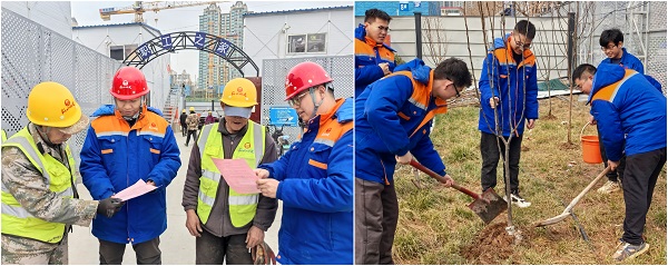3月7日,在植樹節即將到來之際,項目團支部開展了“學雷鋒 植新綠”主題志愿服務活動。在淅淅瀝瀝的小雨中,充滿活力的團員青年們手持鐵鍬、水桶,肩扛樹苗,來到D區智慧建造指揮中心旁的草地,大家迅速分工合作,有的負責挖坑,有的負責搬運樹苗,還有的則小心翼翼地將樹苗植入坑中,并仔細回填土壤、澆水灌溉。小雨似乎也在為他們加油鼓勁,每一滴雨水都像是大自然對這群青年環保行動的肯定與贊許。經過大家的辛勤勞動,蘋果樹、山楂樹、李子樹等30余棵小樹苗扎根挺立,形成一道防止揚塵污染的綠色屏障。(二分公司)