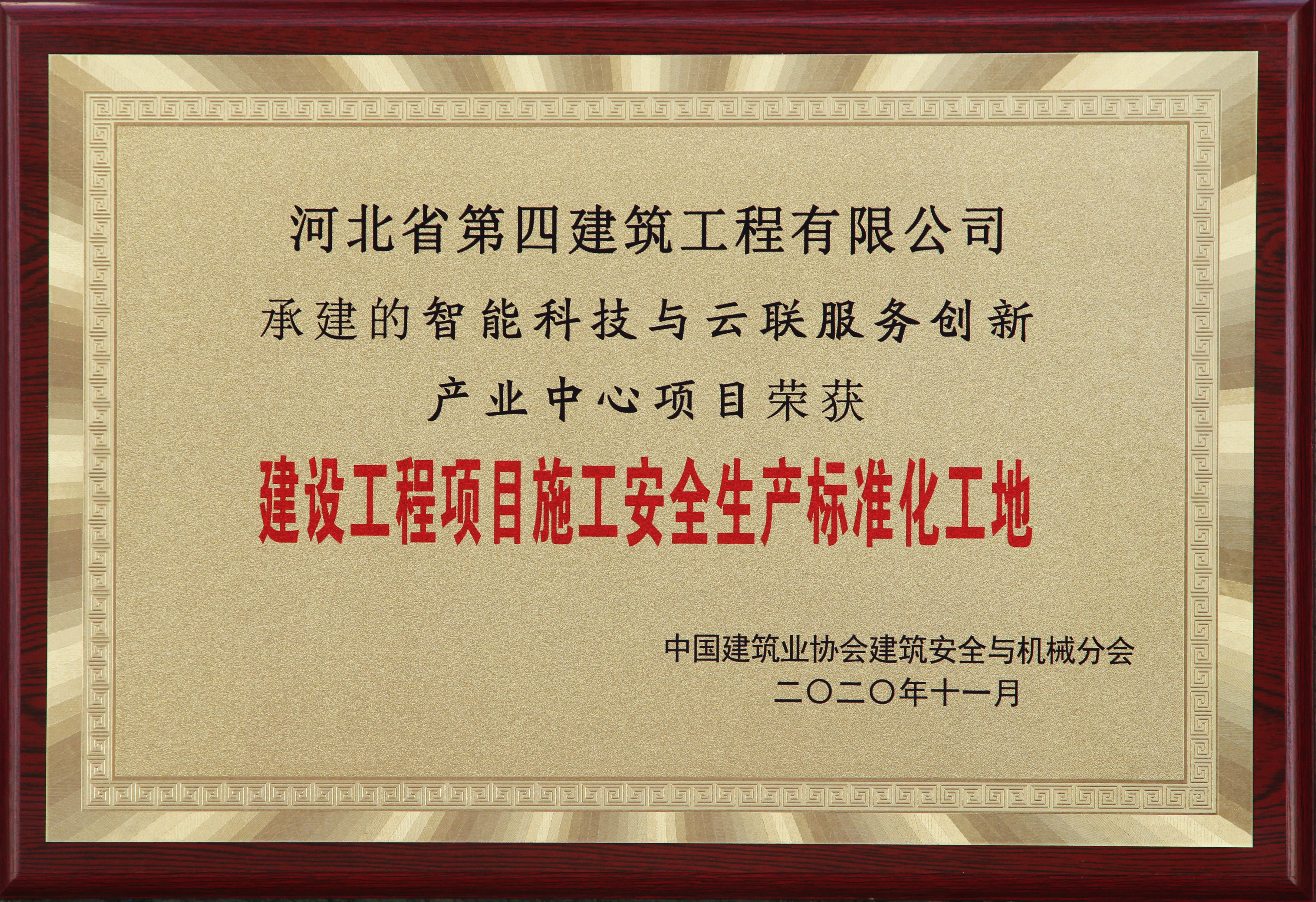 2020年12月23日,中國建筑業協會安全與機械分會在北京召開了建筑業安全生產管理經驗交流會。會上表彰了全國建設工程項目施工安全生產標準化工地,公司承建的廊坊智能科技與云聯服務創新產業中心工程獲此榮譽。這是既2019年河間項目之后,公司再次獲得該榮譽。
