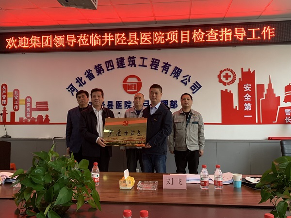 10月27日,集團(tuán)黨委副書記張慶虎、黨委組織部部長張秋英、黨委組織部劉飛等一行三人到省四建二分公司井陘縣醫(yī)院項(xiàng)目黨支部進(jìn)行黨建示范點(diǎn)驗(yàn)收授牌。公司黨委副書記、紀(jì)委書記、工會主席李懷生,黨委組織部部長王彥森,分公司黨總支書記孫立鋒一同參加。