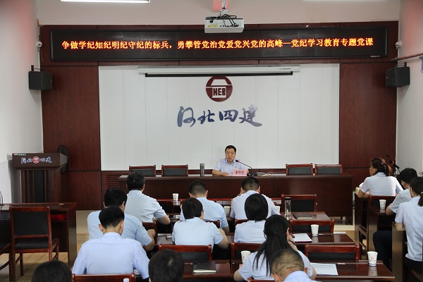 為慶祝中國共產黨成立103周年,推動黨紀學習教育走深走實,6月29日上午,公司黨委副書記、紀委書記、工會主席李懷生以“爭做學紀知紀明紀守紀的標兵 勇攀管黨治黨愛黨興黨的高峰”為題,在公司四樓會議室為各分公司黨總支、直屬黨支部書記和黨群辦主任,以及公司黨群部門所有人員,講授了一堂生動的黨紀學習教育專題黨課。