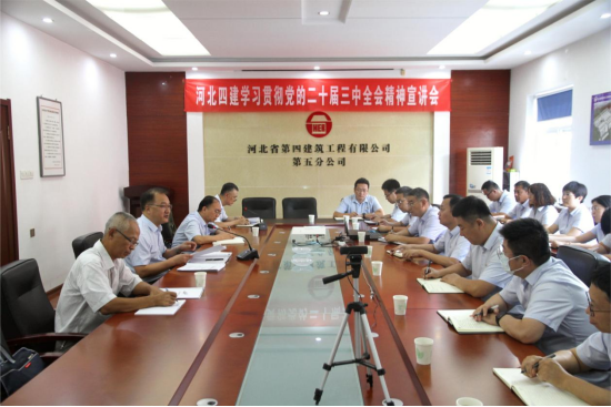 董富強(qiáng)強(qiáng)調(diào),要全力以赴抓好全會(huì)精神的學(xué)習(xí)貫徹工作,一要篤信提站位,充分認(rèn)識全會(huì)的重大意義,把思想和行動(dòng)統(tǒng)一到黨中央決策部署上來,要堅(jiān)持和落實(shí)“兩個(gè)毫不動(dòng)搖”,以實(shí)際行動(dòng)捍衛(wèi)“兩個(gè)確立”,堅(jiān)決做到“兩個(gè)維護(hù)”。二要篤學(xué)悟精神,采取多種形式抓好全會(huì)精神的學(xué)習(xí),加強(qiáng)統(tǒng)籌協(xié)調(diào)和督促指導(dǎo),做到學(xué)深悟透、融會(huì)貫通。三要篤行齊奮進(jìn),以全會(huì)精神為指引,增強(qiáng)機(jī)遇意識,堅(jiān)定信心,全力做好市場開發(fā)、風(fēng)險(xiǎn)防控、項(xiàng)目管理等工作,推進(jìn)公司發(fā)展邁出新步伐,為奮力譜寫中國式現(xiàn)代化建設(shè)河北篇章作出河北四建新貢獻(xiàn)。
