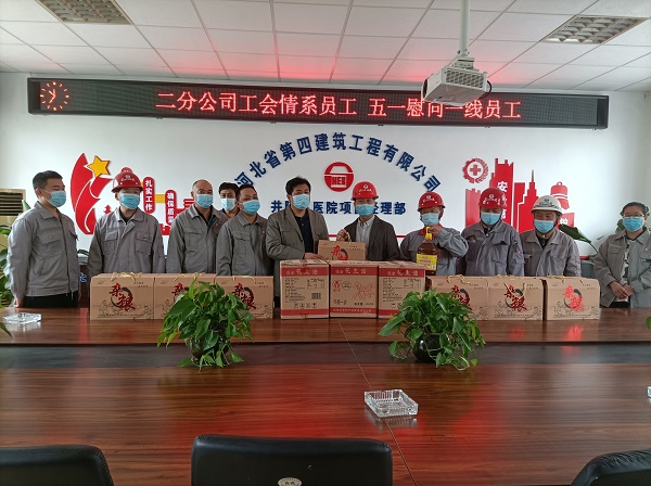 五一勞動節到來之際,二分公司一直掛念著奮戰在項目施工一線的職工。4月30日上午,分公司工會主席孫立鋒一行代表分公司到石家莊井陘縣醫院項目,看望慰問項目職工,為奮戰在施工一線的職工送上節日慰問品和祝福。