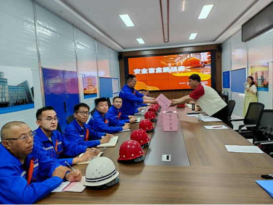 “腳手架的橫向水平桿最大間距不得超過多少米?”“不得超過2米。”“深基坑維護失效有哪些早期癥狀?”……5月15日上午9時,在元氏二院項目部會議室內,一場別開生面的“安全盲盒”挑戰賽正在舉行。會議桌中央兩個“安全盲盒”吸引了全場人員的目光。比賽由分公司安全管理科副科長劉碩主持:“盲盒內裝有危大工程相關標準規范和安全知識問答卡片,參賽者隨機抽取作答,我將根據回答情況進行講解,幫助大家深化理解。”